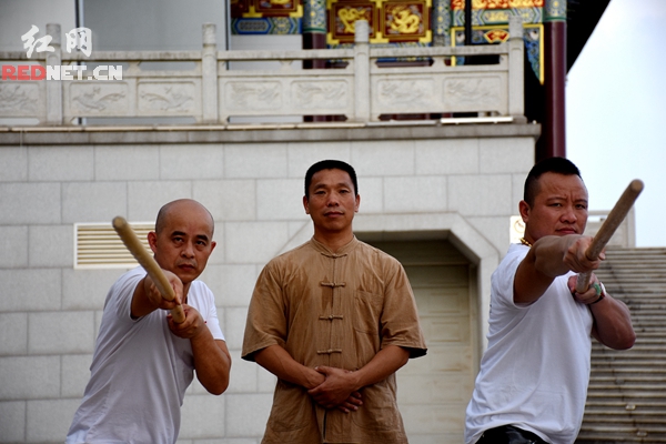 带队身穿黄色练功服的是颜亮鸣,巫家拳第六代传承人,也是湘潭巫家拳协会常务副主席、巫家拳馆馆长。