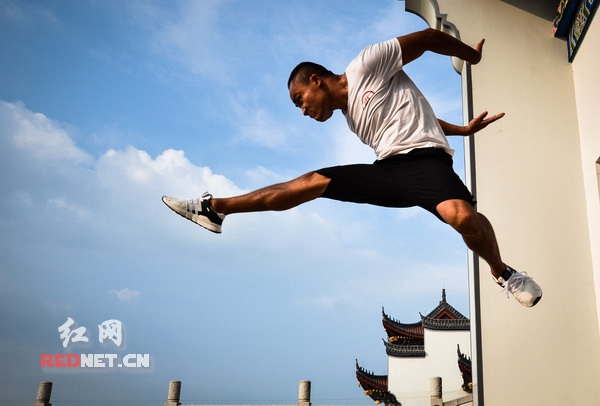 立秋后的湘潭,消散了闷热,随之而来的是凉风习习。万楼沐浴在夕阳里,一群练家子,在万楼广场上摆开了架势。