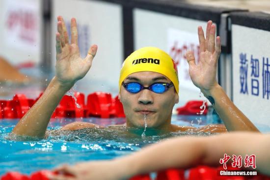 9月2日,天津全运会男子100米仰泳决赛在天津奥林匹克中心游泳跳水馆举行,浙江选手徐嘉余以52秒60夺冠。 中新社记者 富田 摄