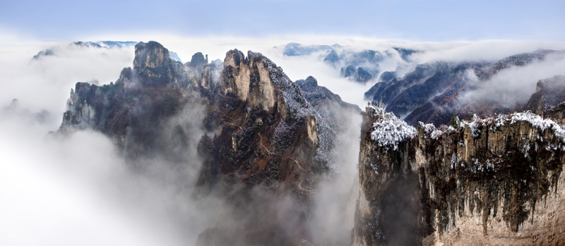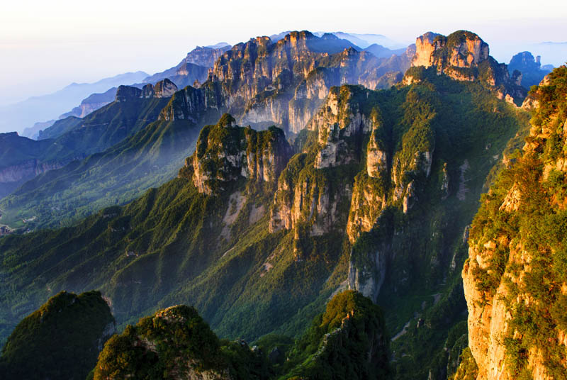 王莽岭位于山西陵川县城东28公里处,该区北临上党盆地,西与晋城毗邻,东南俯视豫北平原,是南太行最高峰。处于黄土高原与中州平原断裂地质带最险要处,由高低错落的五十多个山峰组成,最高海拔1680米,最低处300多米。巨大的落差,形成了绝壁千仞、群峰危立、峡谷纵横的地质地貌;同时冷暖气流在此交汇,形成北方罕见的云涌雾腾的气象景观;境内年平均降水约1000毫升,植被覆盖率达96%,夏季平均气温20。王莽岭是八百里太行自然景观的典型代表,被誉为“太行至尊”。