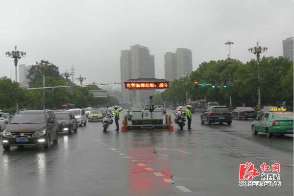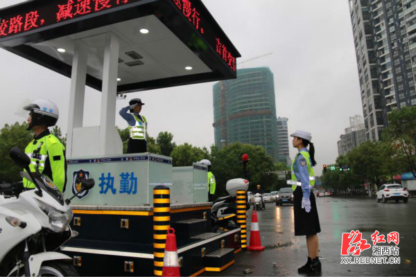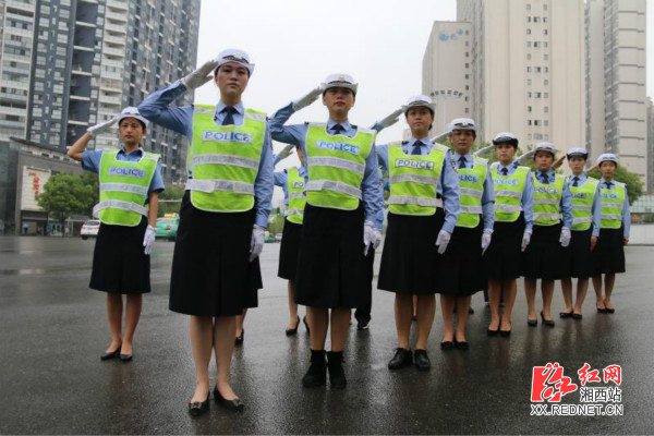 女民警、女辅警组成的“女子形象岗”正式“靓”相吉首城区世纪大道与荣光路十字路口。