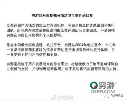 事件后续的猜测、质疑层出不穷。“剧情”可谓一波三折,跌宕起伏。酒店、蓝莓评测、穷游网演绎了一出“罗生门”,到底该信谁,网友们还在坐等真相。