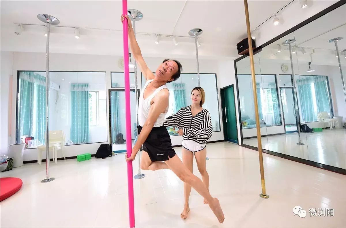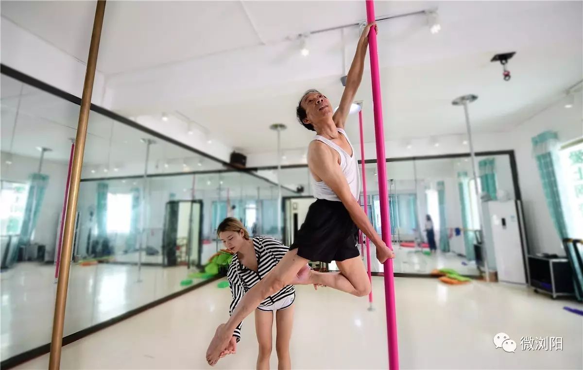 他名叫瞿根胜,老家在龙伏镇焦桥村,祖辈都是农民。他今年65岁,学习钢管舞才一个月。