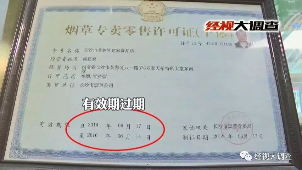 随后,执法人员又对位于泰天酒店的烟酒超市进行执法,执法人员发现,他们的烟草经营许可证已经过期,而老板也承认了售卖假烟的事实。