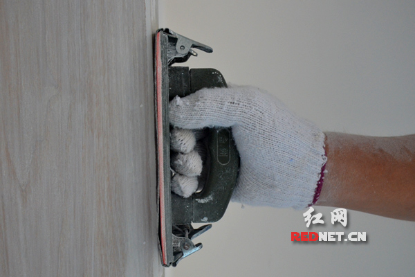 油漆工石国城不时来回细心打磨,衣服上早已布满灰尘。