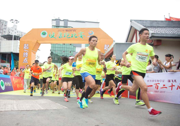 “铭记汤非凡”健康跑开跑。 屈政亮 张嘉顺 / 摄