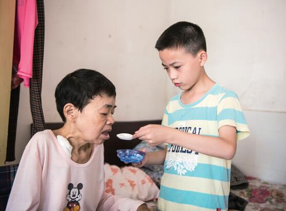而今,王端美租住在县人民医院附近,每个星期要透析两到三次,生命垂危。喻壮寄宿在学校,每个周末都要先回到寄住的伯伯家,然后再由伯伯或伯母送上班车,去医院看望妈妈。