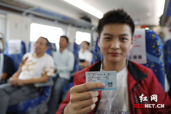 乘客杨煜购买了第一趟石长铁路动车车票,从长沙去常德。