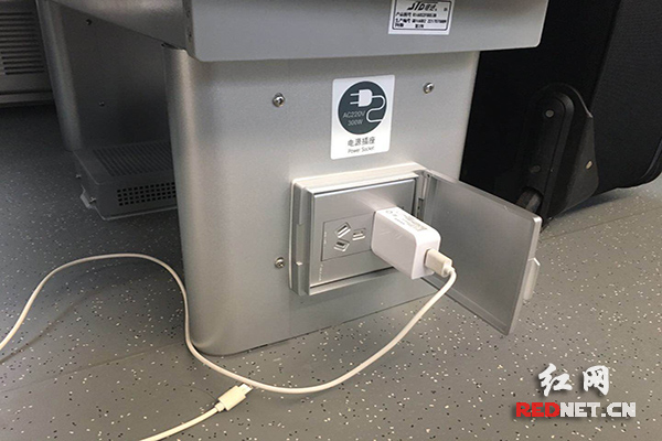 车组每排座椅靠走廊侧都预留有电源插座,方便旅客在途中为手机、笔记本、平板电脑等常用设备充电。