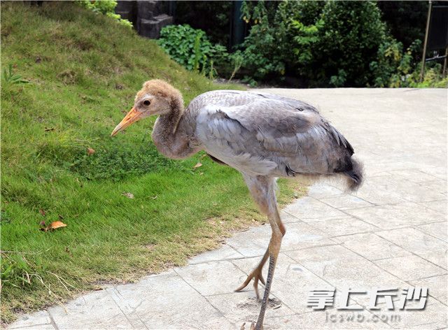 黑颈鹤“大宝”目前是只丑小鸭,但未来它将长出高贵的“外衣”。