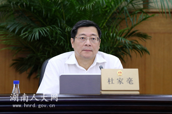 杜家毫强调,中共中央政治局常委、全国人大常委会委员长张德江来湘考察期间的重要讲话和在全国人大第十八期代表学习班以及第二十三次全国地方立法工作座谈会上的重要讲话精神,是我们做好当前和今后一个时期人大工作的基本遵循,要深入学习领会,认真抓好贯彻落实。要旗帜鲜明讲政治,始终坚持和加强党的领导,树牢“四个意识”,增强“四个自信”,确保人大工作在正确轨道上有力推进,发展更加广泛、更加充分、更加健全的人民民主,更加注重加强自身建设,有效提高履职能力和工作水平。要把加强环境保护监督作为人大及其常委会依法履职的重点,依法推动形成联防联治格局,不断提高污染治理和生态建设法治化水平。要尊重代表主体地位,把密切联系人民群众作为充分发挥代表作用的重要途径,注重加强代表学习培训,严格把好代表资格审查关,大力支持保障和全面提高各级人大和人大代表依法履职能力。要坚持以人民为中心加强和改进立法工作,始终把党的领导贯穿立法工作全过程和各方面,加强立法队伍建设,提高立法质量,确保党中央大政方针和省委各项决策部署得到全面落实,确保宪法法律法规得到严格遵守和执行,确保人民群众合法权益得到更好保障。