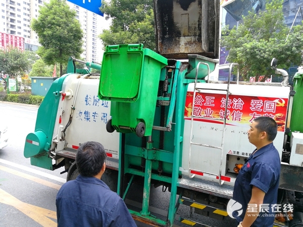 (上午,星辰全媒体记者跟随垃圾清运车一同去回收餐厨垃圾。)