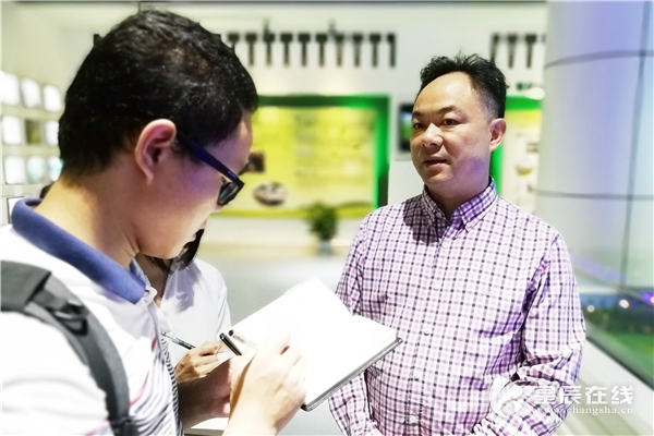 (湖南联合餐厨公司事长易志刚[右]向星辰全媒体记者介绍情况。)