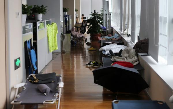6月23日,成都腾讯大厦内,“王者荣耀”开发团队的员工在行军床上休息。东方IC 资料图