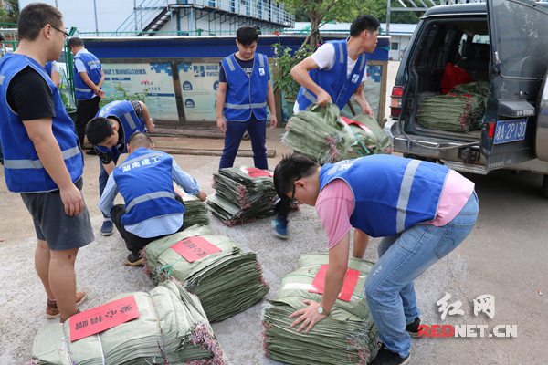 湖南建工集团直属工程公司宁乡市民之家PPP项目部工作人员在宁乡搬运援助物资。