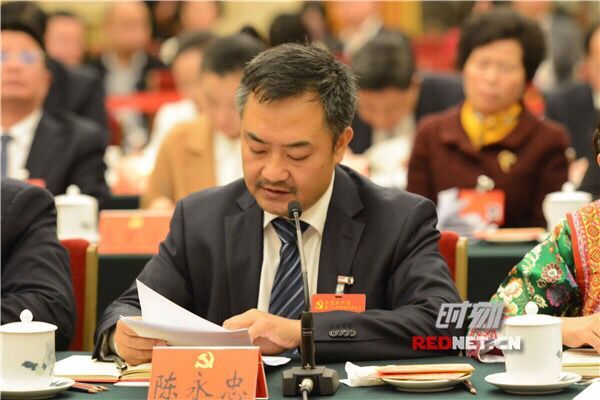 党的十九大代表陈永忠在湖南代表团全体会议上发言。