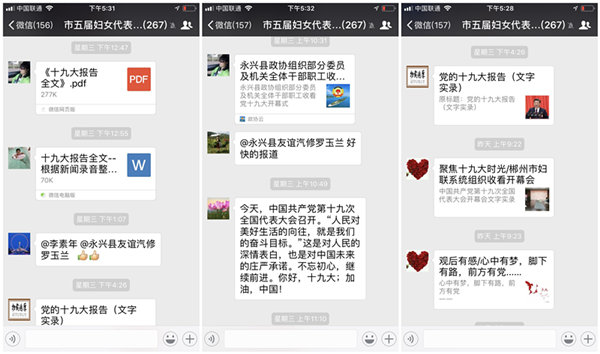 郴州市200多名妇女代表在郴州市妇联的通联微信群热议十九大工作报告。