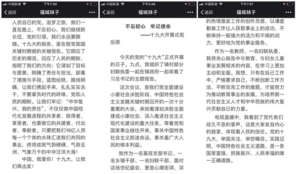 郴州市妇女代表在郴州市妇联公众号“福城妹子”踊跃发表观后感言。
