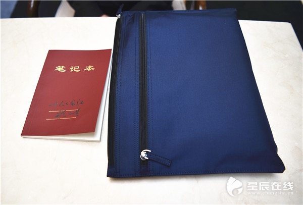 统一配发给全国2280名十九大代表的深蓝色环保型公文包。
