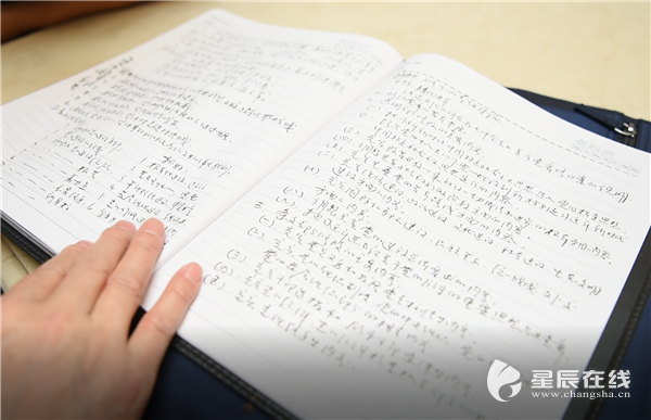 (翻开虢正贵的黑色封皮笔记本,密密麻麻记满了关于十九大报告的内容。)