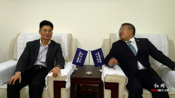 盘古智库理事长易鹏会见湖南红网新媒体集团党委副书记、总编辑贺弘联(左)。