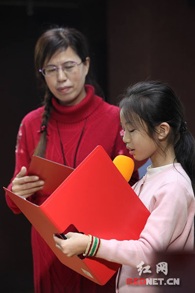 朗读者、长沙市雨花区委宣传部副部长李绍萍朗读《为了母亲的微笑》,讲述了背着老年痴呆母亲跋涉三十公里上下班的人民教师陈斌强的故事。