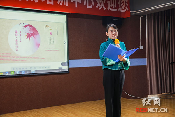 10月22日,霜降前夕,重阳将至,潇湘诗会之24节气霜降·孝老爱亲主题分享诗会在长沙潇影大厦北京电影学院湖南培训中心举行。白昼秋云散漫远,霜月萧萧双飞寒,寒霜降,冬日迫近,这场在凛凛寒风即将到来之前的聚会,将目光放向饱经风霜的老者,用一首首诗歌将一个个感人至深的孝亲故事娓娓道来。婉转低喃,诗意流淌之间,古老的美德无声蔓延,让寒流退散,这残秋也显得温暖动人。