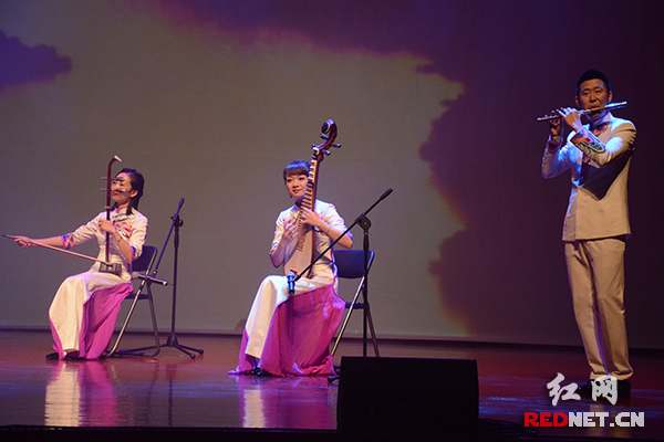 青年琵琶演奏家石泉、青年竹笛演奏家周博、青年二胡演奏家周妍共同演奏具有湖湘文化特色元素的名曲《浏阳河》。