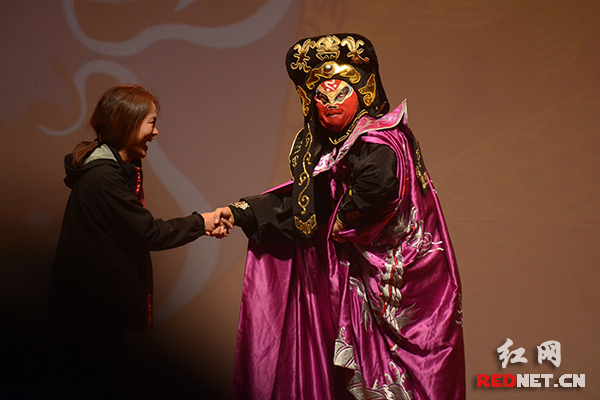 川剧《变脸》与观众现场互动,让韩国民众近距离感受中国文化的魅力。