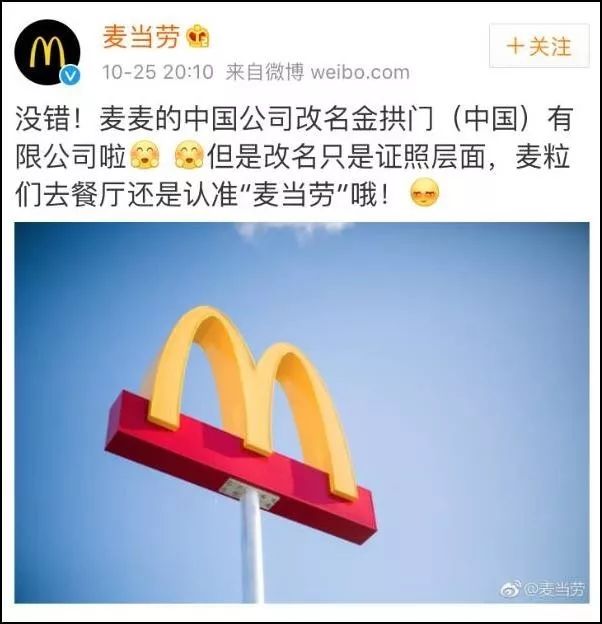 随后,麦当劳也在官方微博发布消息称,改名主要在证照层面,日常的业务不会受到任何影响。