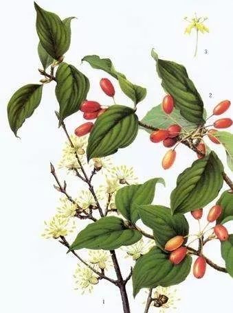 茱萸,又名“越椒”或“艾子”。春天开白花,秋天结紫黑色果实,气温强烈,可入药,有温中、止痛、理气等功效。茱萸还可治霍乱,根可杀虫,佩茱萸可以防蚊虫叮咬。