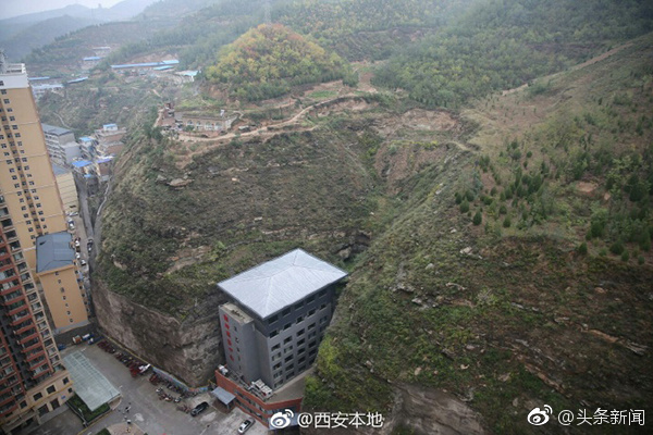 据了解,这家商务宾馆在延川县城内属于档次较高的宾馆。据宾馆的工作人员介绍,宾馆大楼建在了两座山之间的一个夹缝内,这里刚好有一块平地,在对周围山体进行了加固后,盖了这栋楼,大楼距离山体最近的地方,只有三四米的距离。