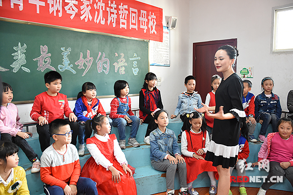 红网时刻11月1日讯(湘潭分站记者 楚湟)11月1日,湘潭籍国际著名青年钢琴家沈诗哲心怀感恩,为母校熙春路逸夫小学近50名师生,带来了一场温情的音乐课,并赠送了100张“金阳城2017大师之声阿里·瓦迪钢琴独奏音乐会”门票,激励学弟学妹追逐音乐梦想。