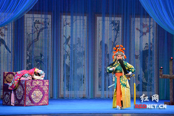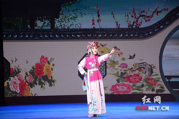 湘剧演员曹威治则表演了《昭君出塞》选段。演出中,她将昭君离乡别井时的“一步三回头”,肝肠寸断的思乡之情演绎得淋漓尽致,现场观众连连叫好。“大气,行云流水,一气呵成,是湘剧不可多得的演员。”是当晚评委对她的评价。