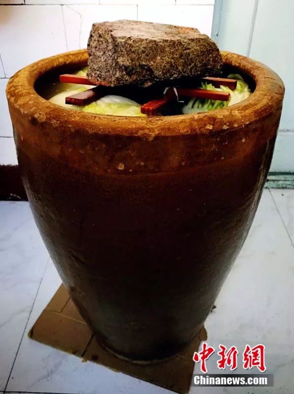 还没有酸菜缸高的时候,东北小朋友就帮着妈妈往缸里递白菜。等缸口压上了石头,就一天三遍地问:“啥时候能吃啊?”。