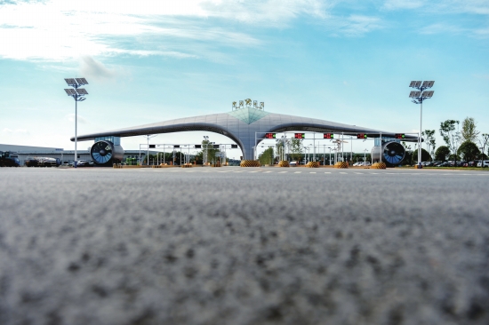 (黄花综保区大门设计成飞机两翼形状,寓意“湖南开放崛起”。辜鹏博 摄)
