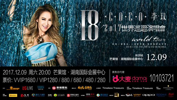 演出名称:2017COCO李玟18世界巡回演唱会长沙站