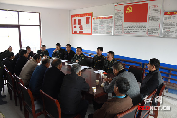 11月22日,娄底军分区政委罗玉生来到新化县厚溪村就该村脱贫攻坚工作召开座谈会,规划明年的脱贫工作。
