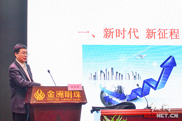随后,宁乡高新区企业大讲堂(第一期)开讲,湘潭大学副校长刘长庚带来题为《学习十九大报告,理解中国宏观经济形势》的课题,大讲堂上,与会企业家们全神贯注学习,纷纷为企业大讲堂点赞。