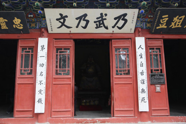 岳飞庙大殿,门前楹联“人生自古谁无死,第一功名不爱钱”