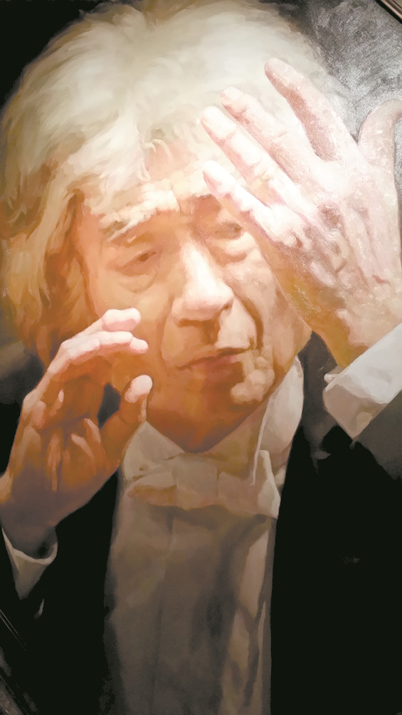 油画,指挥家小泽征尔。摄于中国大剧院。