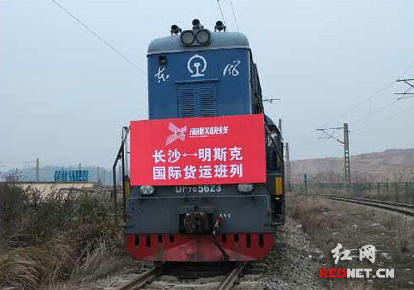 “湘欧快线”明斯克班列41个集装箱,满载着湖南的电子产品、鞋服、光缆、五金、机械零配件等货物。(资料图)