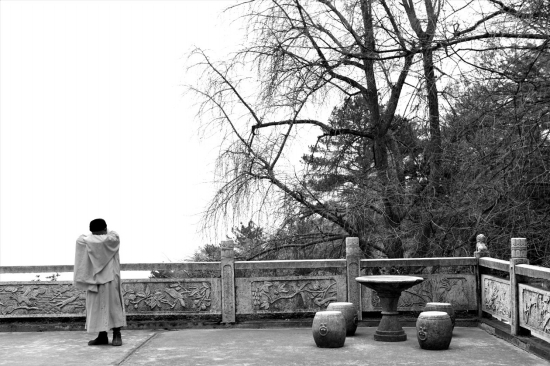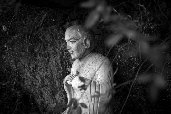 12月12日,衡山南台寺,石头希迁禅师的雕像就在寺内的巨石之上,这也是他当年常来的地方。 组图/常立军李林冬