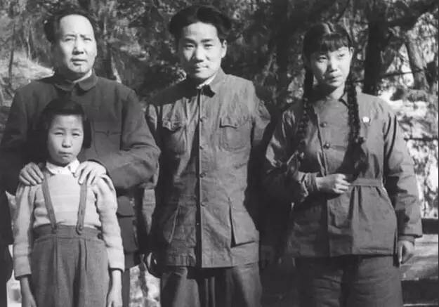 △1949年4月,毛泽东和毛岸英、刘松林、李讷在香山。