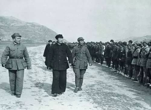 △1939年,毛泽东和朱德检阅抵达延安的三五九旅。