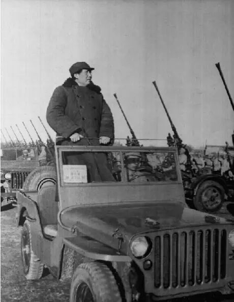 △1949年3月,毛泽东检阅我军第一支高炮部队。