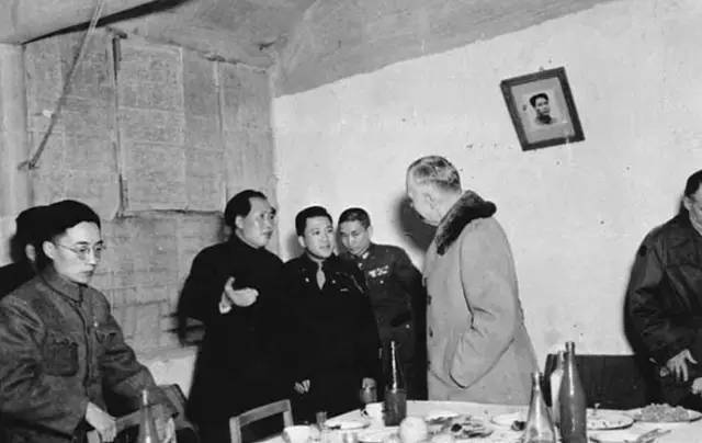 △1946年3月4日,毛泽东在延安设宴欢迎美国总统特使、军事三人小组成员马歇尔。