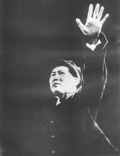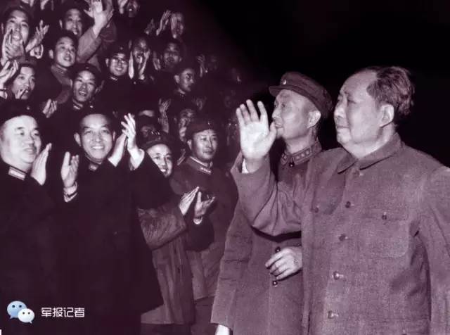 △1965年2月22日,毛泽东主席在首都体育馆接见了解放军报社全体同志。照片中,毛主席向大家挥手致意。