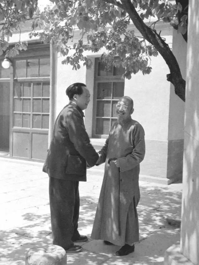 △1949年初夏,毛主席在北京香山双清别墅接见柳亚子先生。