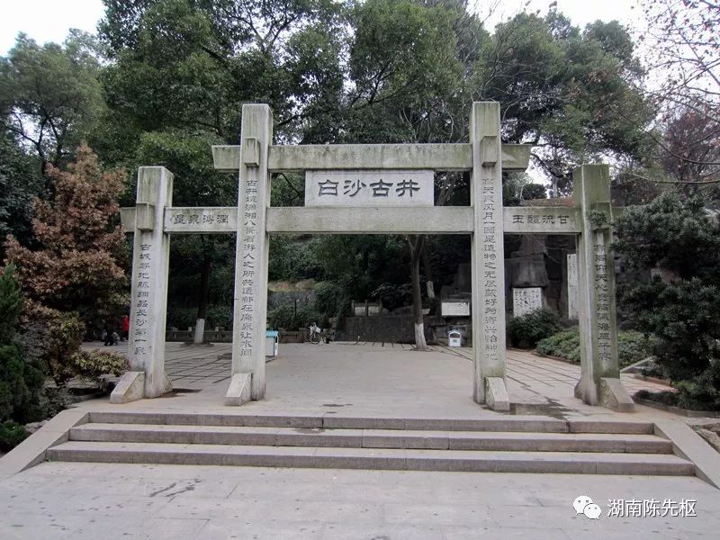 今白沙井四周建为白沙古井公园,正面立四柱三门石坊,右建古人诗文碑廊,长沙居民虽都早已用上了自来水,但提桶至白沙井取水者仍络绎不绝。石坊刻隶书联二副,皆为当代楹联家佳作。